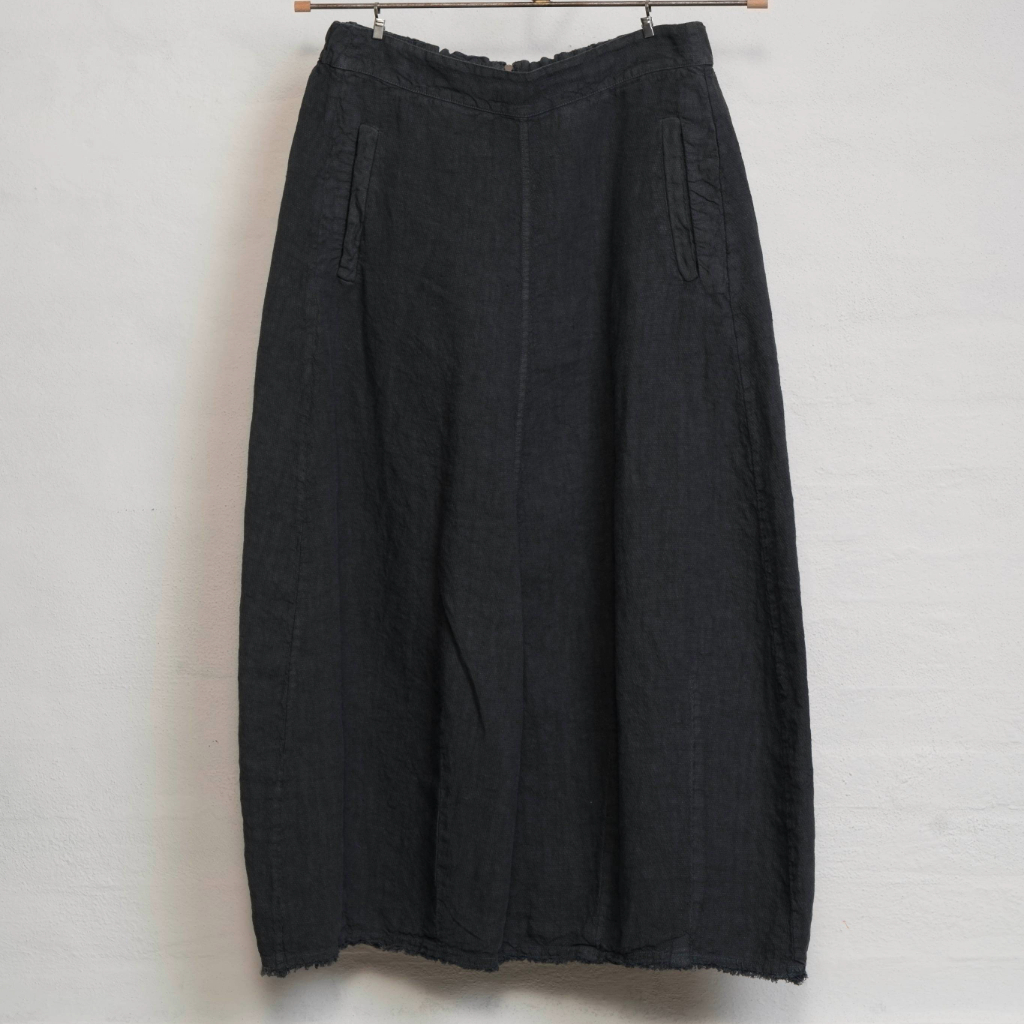 The Hannoh Wessel Jade skirt is made from linen in navy. It features an elasticated waist, a zip at the back, two pockets, and a seam detail running down the front for a flattering fit.
