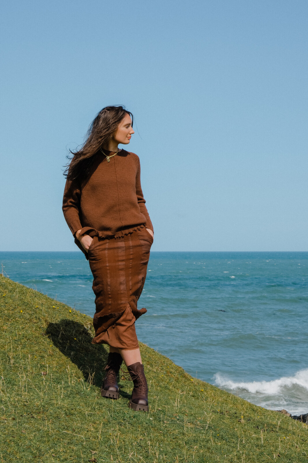Elevate your wardrobe with the Hannoh Wessel Julie skirt, a perfect blend of comfort and sophistication. This straight, mid-length skirt is crafted from a luxurious linen-wool blend, offering a soft yet structured feel. Fully lined in cotton for added comfort, the skirt features side pockets for practical elegance. The elasticated back waist, combined with a discreet zipper, ensures a perfect fit and ease of wear.