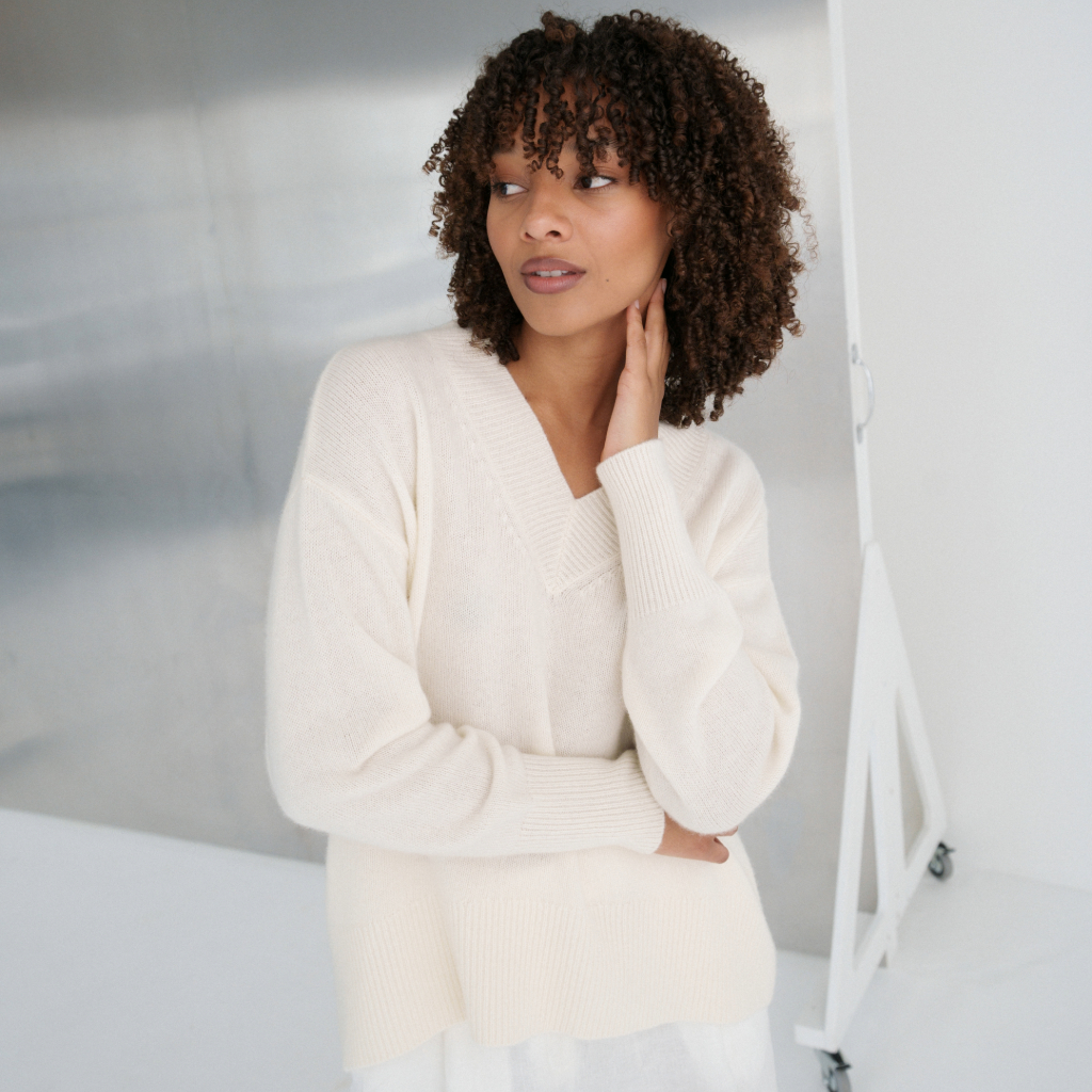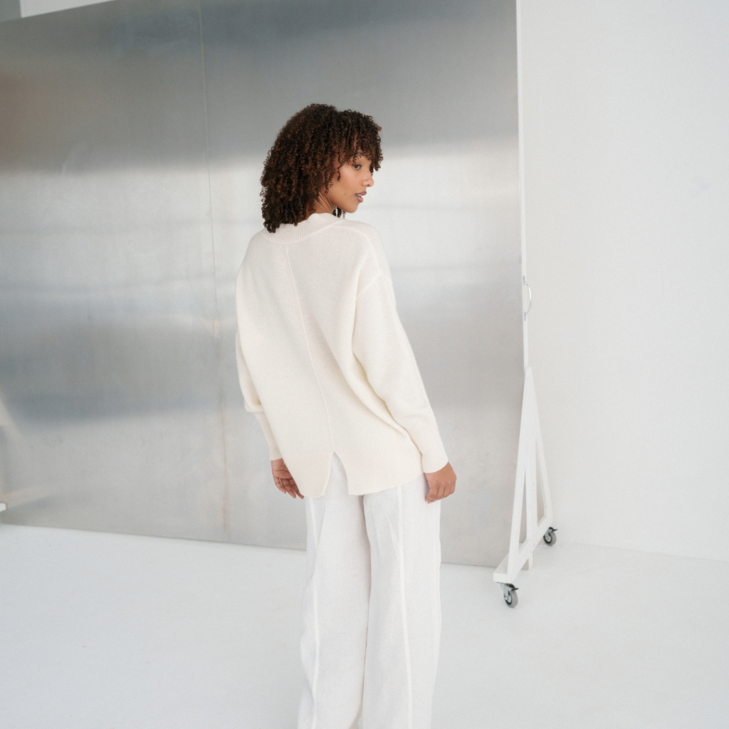 Luxuriously soft, lightweight, and breathable knit with a chunky neckline and back split hem.