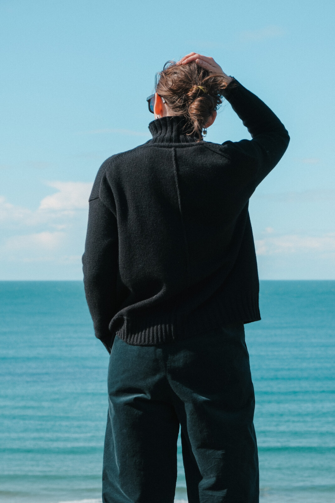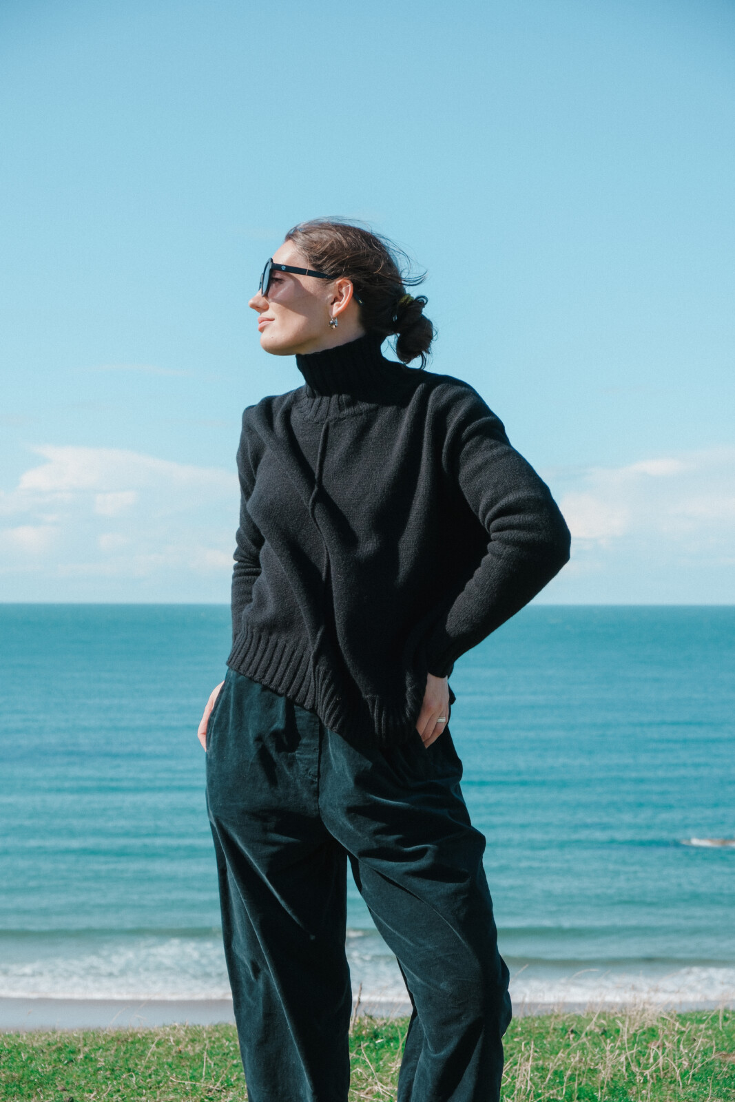 MJ Watson high neck pullover in black, crafted in Italy from the finest cashmere. Cut to a loose, boxy shape with a stay-up turtle neck, ribbed trims, and seam detailing front and back. Soft, versatile, and effortlessly refined.