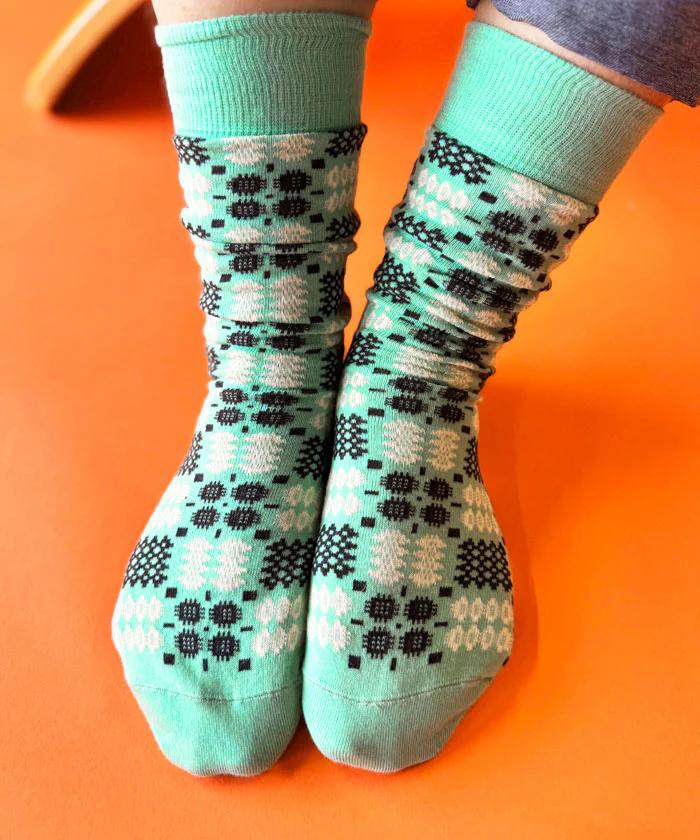 A pair of beautiful fine cotton socks based on a traditional Welsh Tapestry pattern.