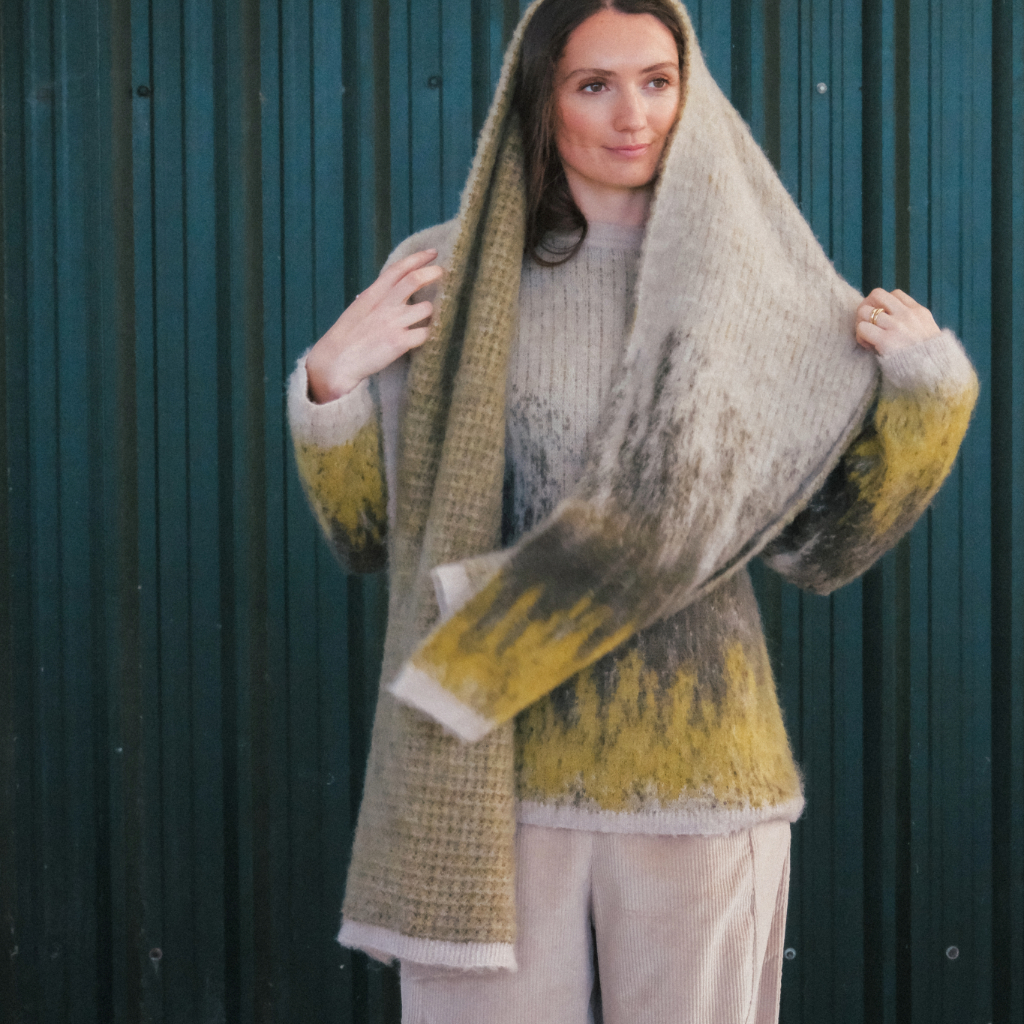 A soft, brushed-knit scarf with a bold, painterly pattern in warm earthy tones. Cozy, lightweight, and perfect for adding colour and texture to winter looks.