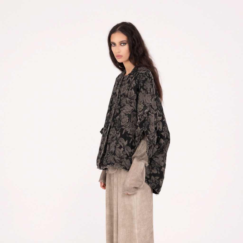 Designed in a brushed cotton-blend jacquard with a floral pattern, this jacket is finished with a lightly padded viscose lining for added comfort. The fabric is cold-dyed for a distinctive look.