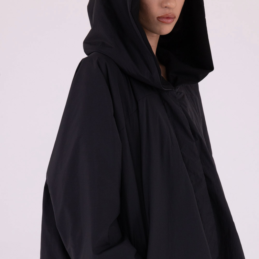 A super-soft quilted coat with an asymmetric midi-length cut. Designed with an asymmetric scarf-style collar, spacious hood, and ribbed sleeves finished with thumbholes for extra comfort. Fully lined to keep you warm and easy to layer through the colder months.