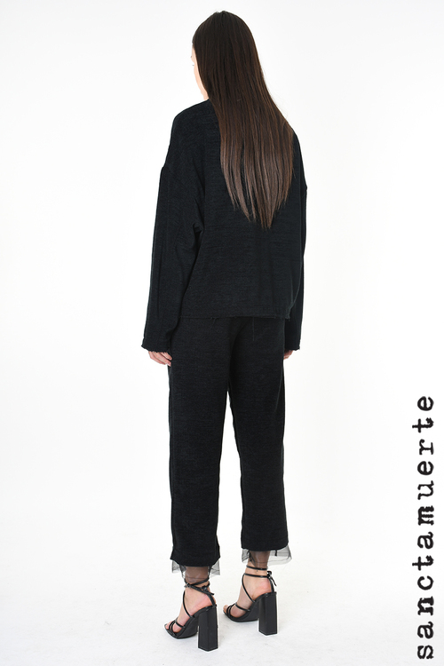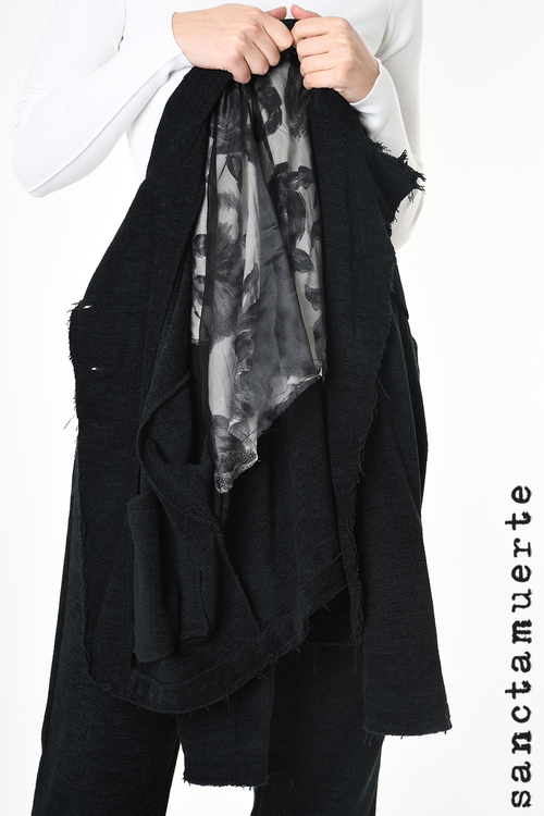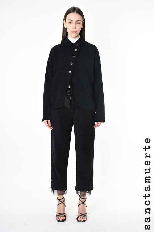 Bold and stylish, the Sanctamuerte button front black jacket is a staple piece for any wardrobe. Perfect for layering over casual or formal outfits.