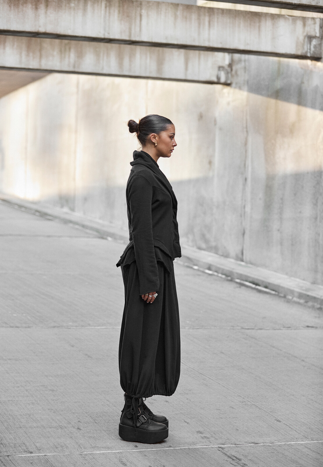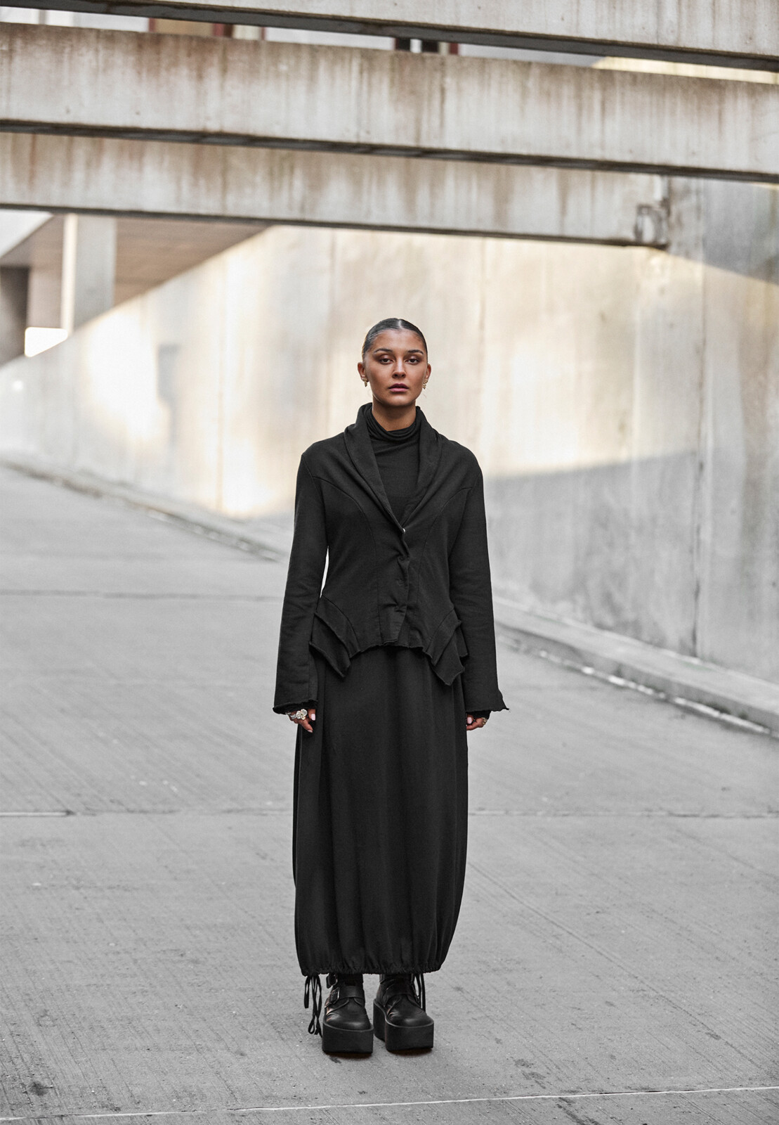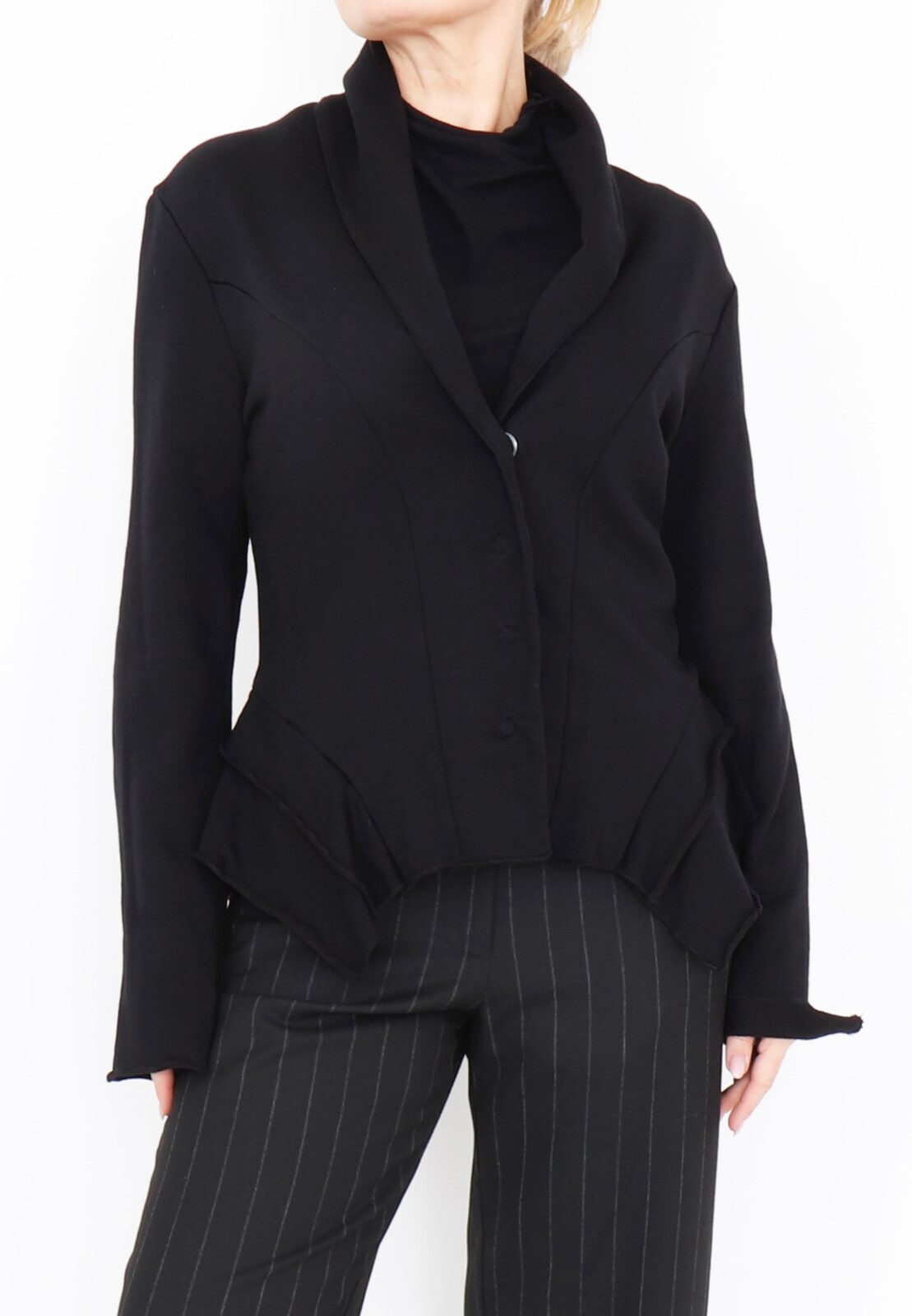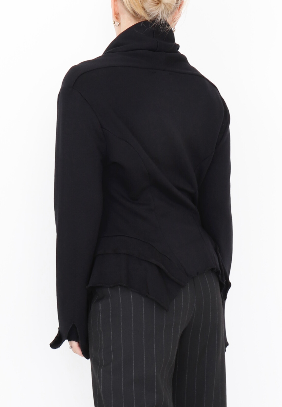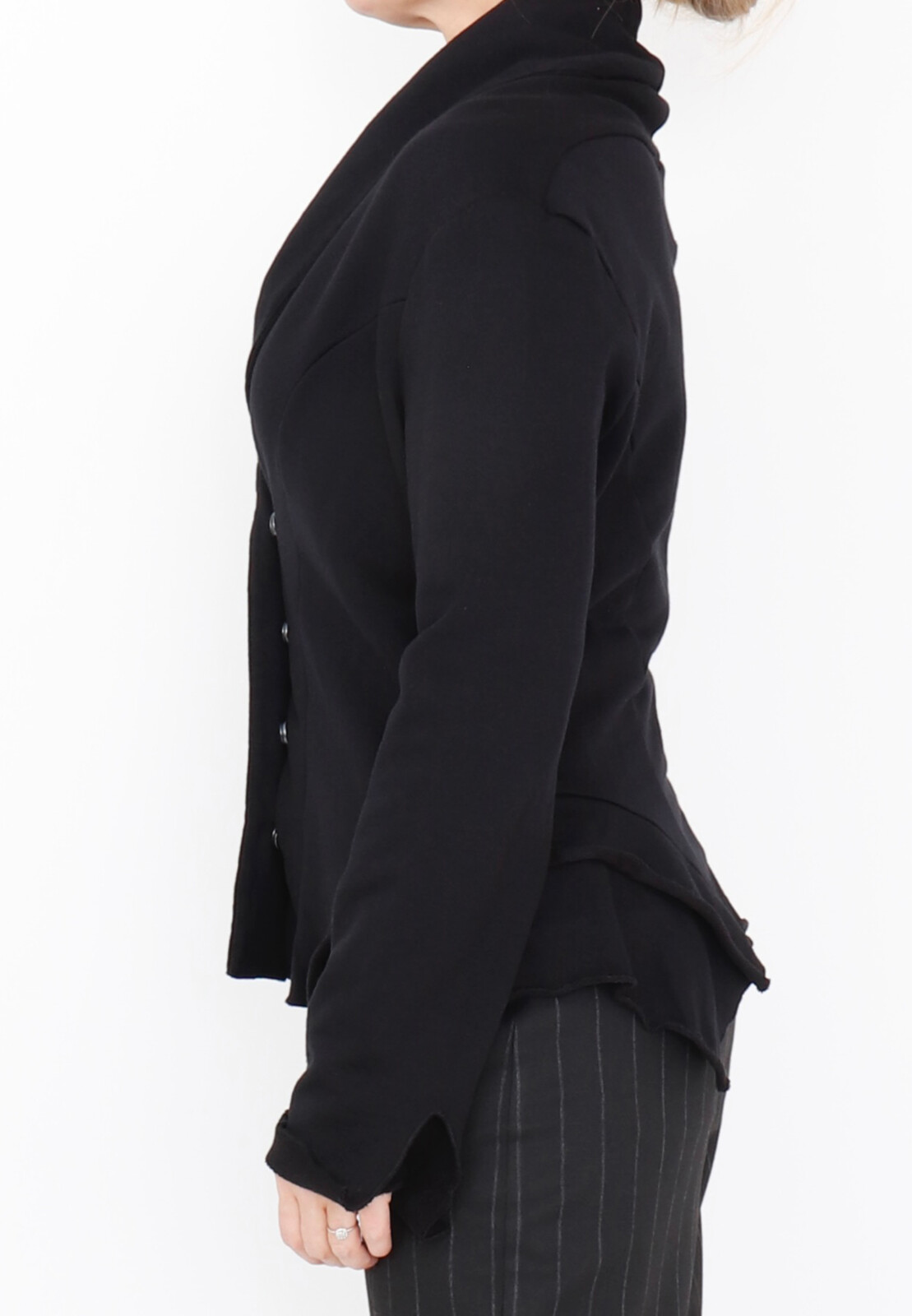 Blazer from Sort Aarhus in their signature sweat fabric with button closure, raw edges, and a soft collar for a relaxed yet elegant look.