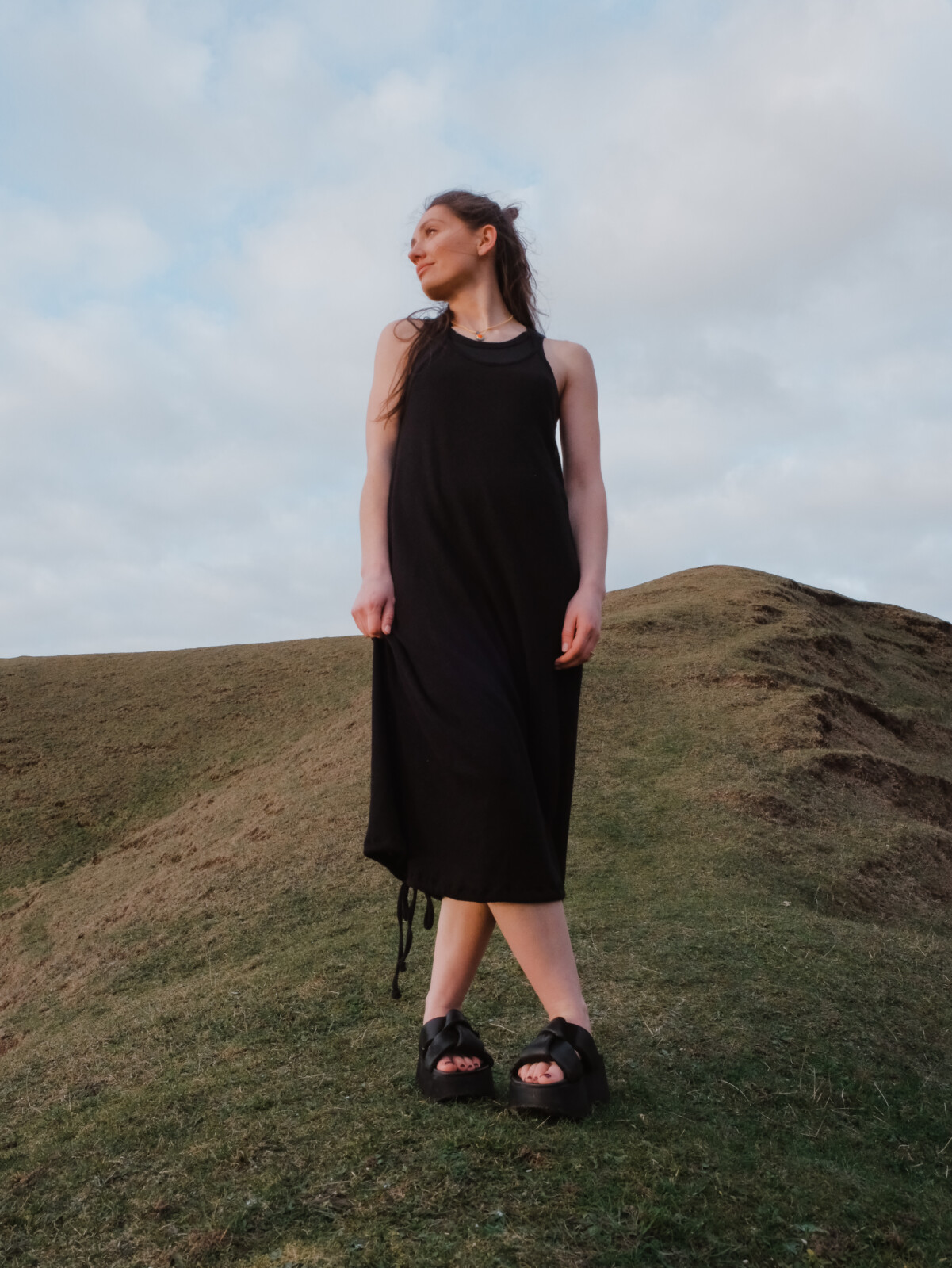Airy and stylish dress designed in a light semi-transparent cotton and linen blend. This dress features a loose fit with thin straps and a feminine touch. The drawstring at the bottom allows you to adjust the silhouette, so you can tailor the look to your preference. Perfect for layered styling or wearing alone on warm days.