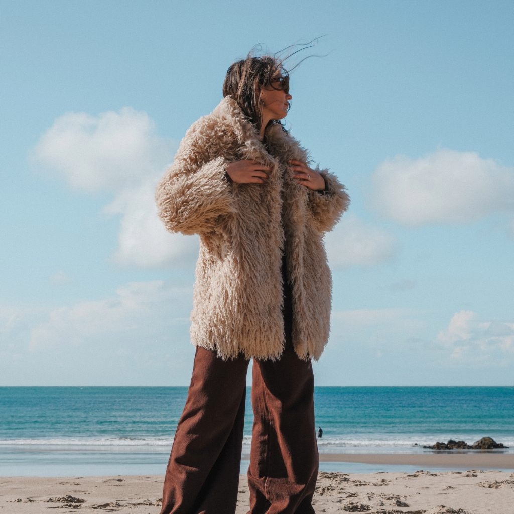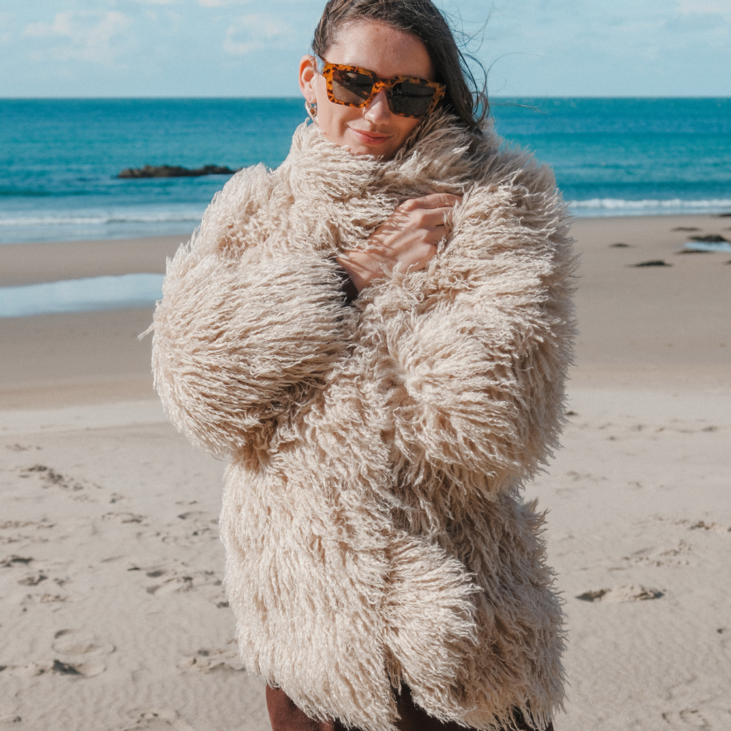 Long faux fur coat in a rich alpaca blend, featuring a lapel collar, button fastening, and satin lining. Falls above the knee with a fully textured finish for a luxurious look.