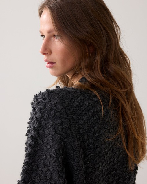 Cozy loop-stitch cardigan in a regular fit with a round neckline and shiny button closure. Warm, playful, and easy to style.