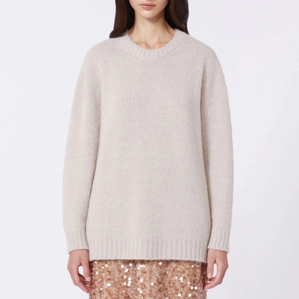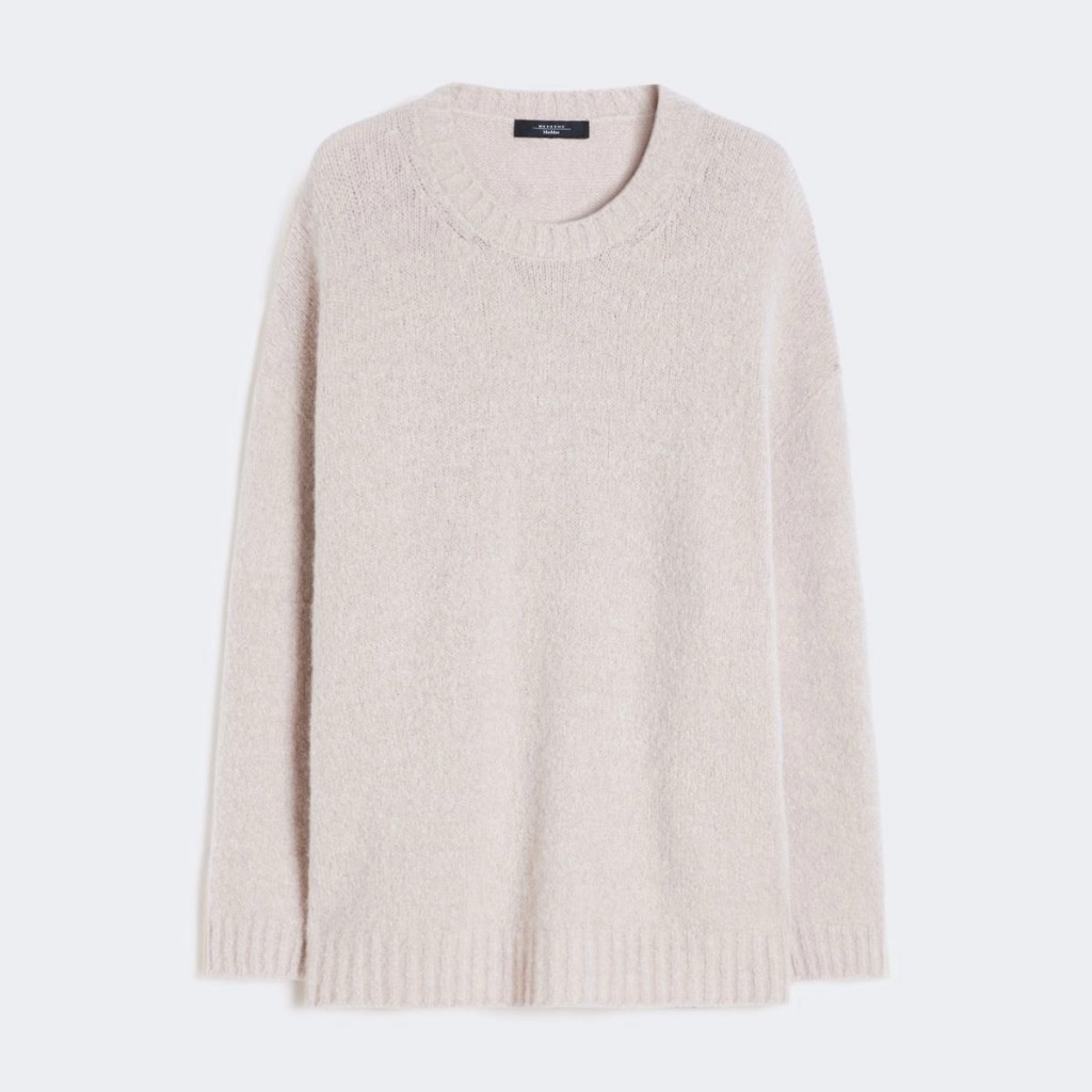 Oversized sweater with a top-of-the-hip length.