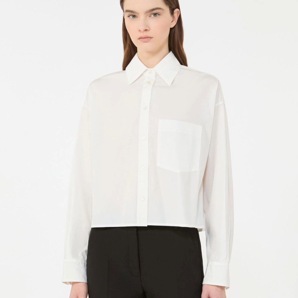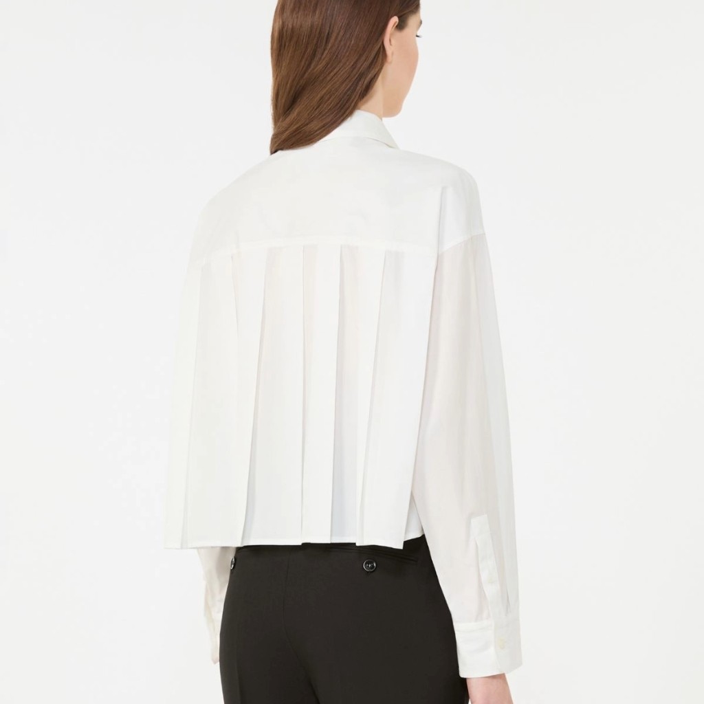 Classic-inspired cropped shirt with pleat motif at the back and patch chest pocket on the left.