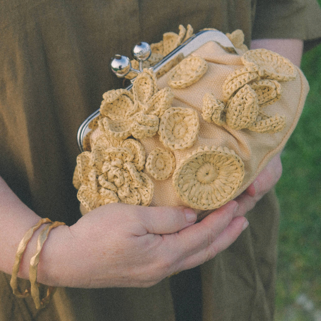The small Pasticcino bag from Weekend Max Mara is a statement clutch crafted in raffia-effect woven fabric, embellished with delicate 3D floral appliqués. Finished with a striped lining, signature sphere clasp, and a removable chain strap with leather shoulder pad, it adds a playful yet refined touch to everyday looks.