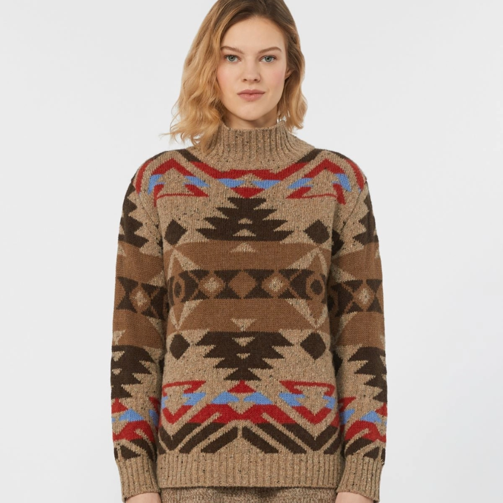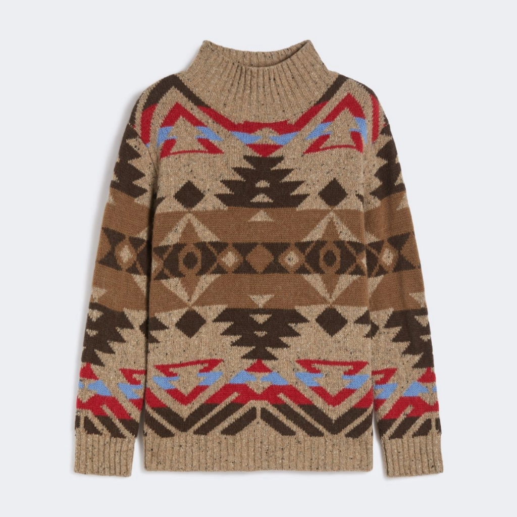 Turtleneck jumper, featuring a jacquard knit that creates a contrasting all-over pattern.