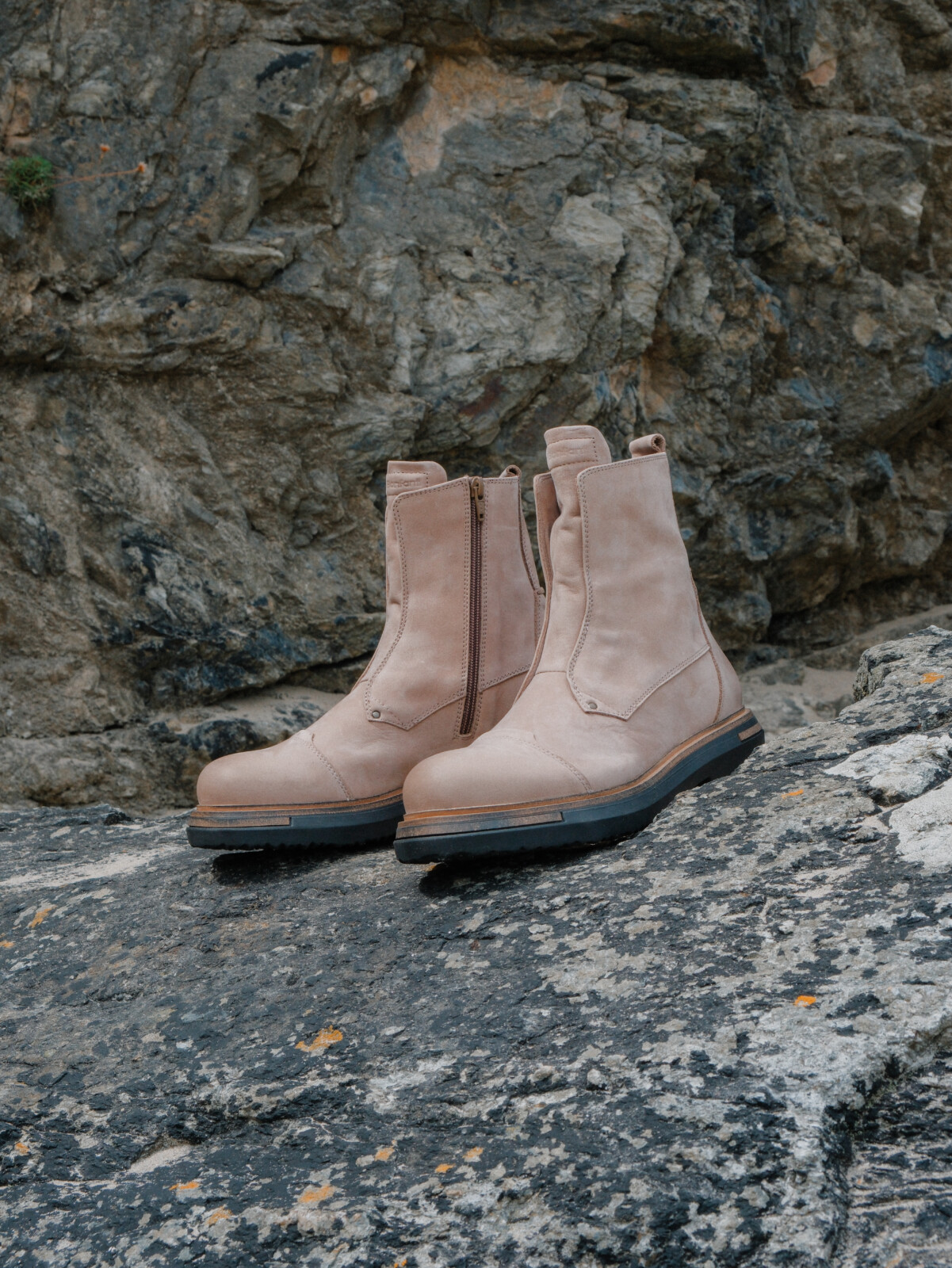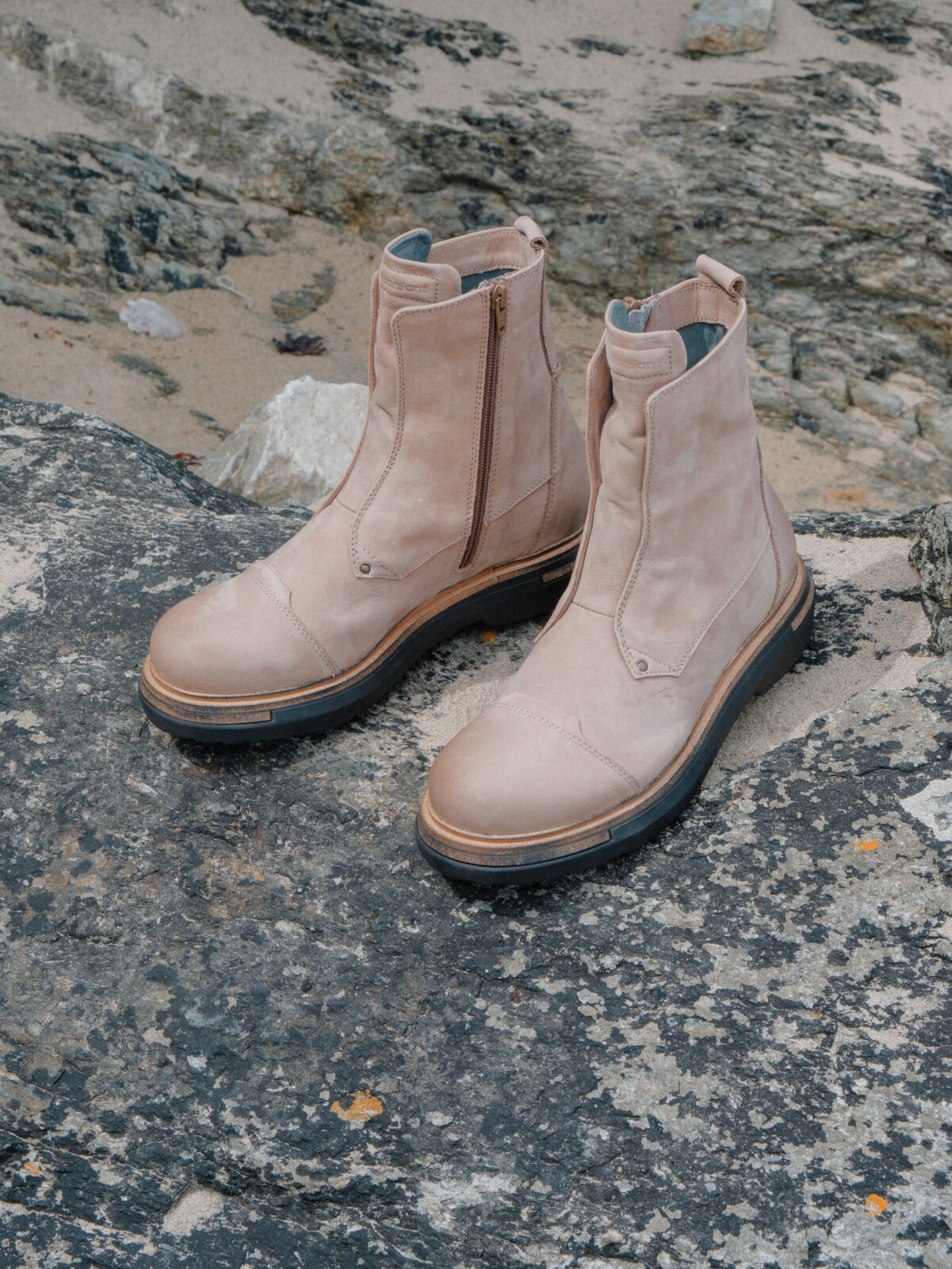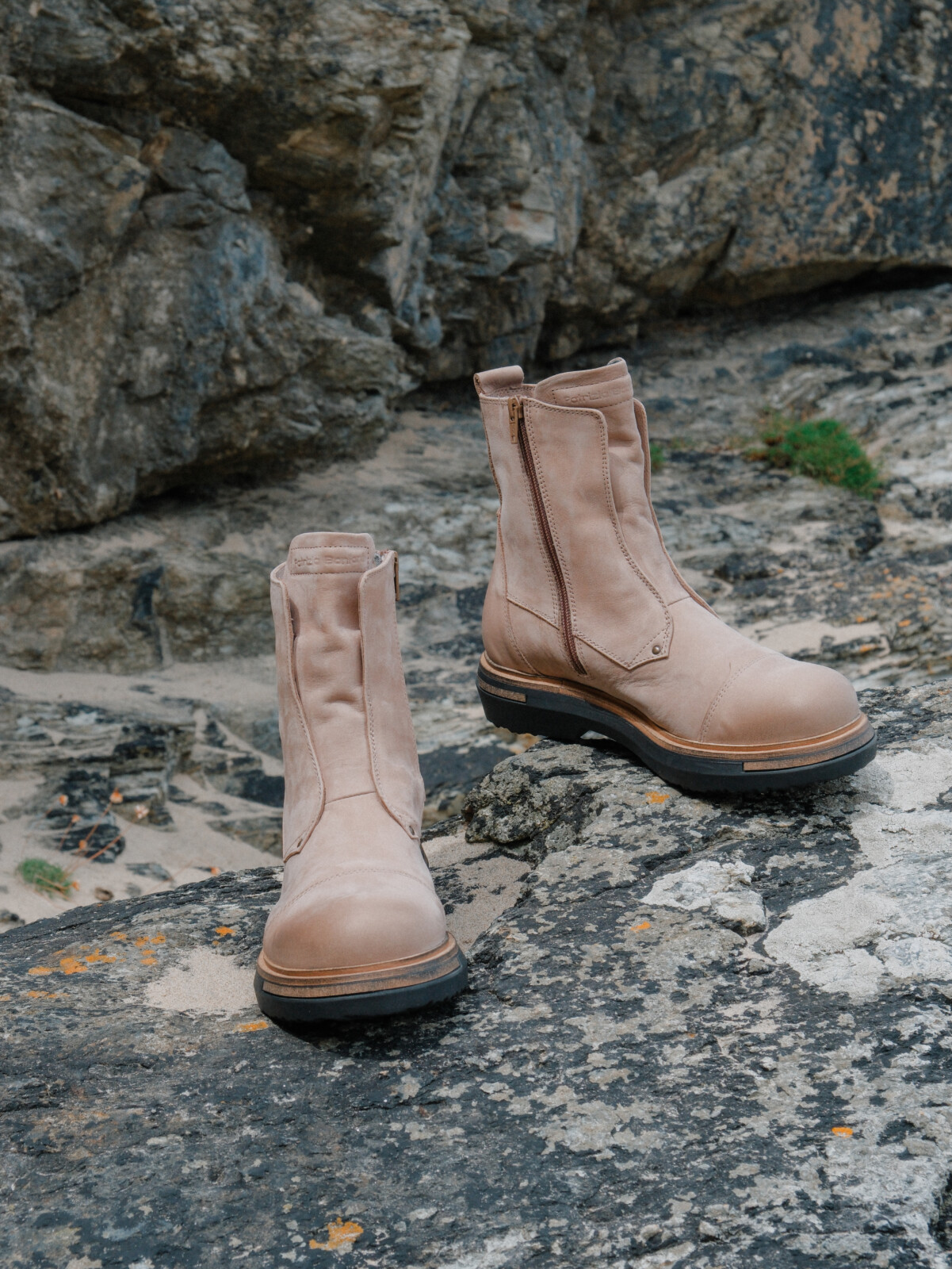 Elegant natural coloured leather boots from Patrizia Bonfanti. Crafted in Italy, they feature a sleek, minimal design with subtle stitching details and a comfortable, robust sole. Timelessly stylish.